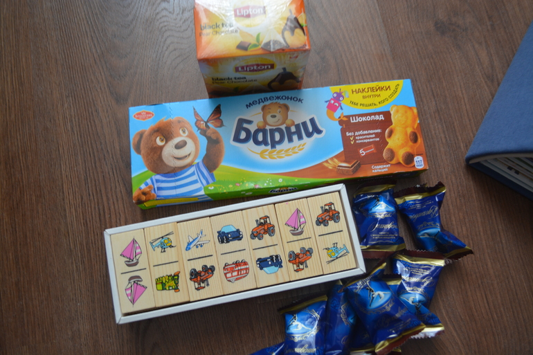 Это вкусности к чаю и чаек, и подарочек Марику. С ним наша феечка Лена угадала при угадала. У нас в большом почете игрушки из дерева, а это еще и развивайка что невероятно круто ну и конечно же обалденный запах дерева!!!!!!! Конфетки были в красивой коробочке, но она до фотографирования не дожила. Для сынули все коробочки это его гаражи для машинок и трогать их никому нельзя! И эта коробочки тоже сразу же стала гаражом.