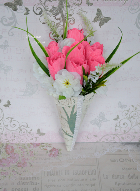 Букеты из конфет. Свитдизайн.У меня сегодня скромненький один кулечек из тюльпанов.