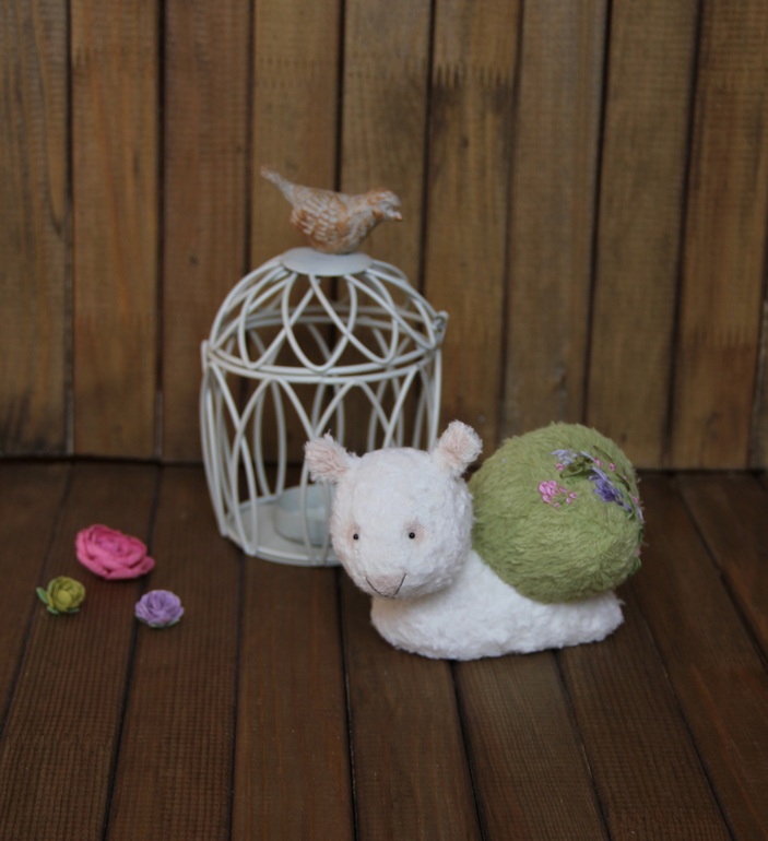 Улиточка сшита вручную по моей выкройке из немецкой вискозы. Внутри у нее древесные опилки.