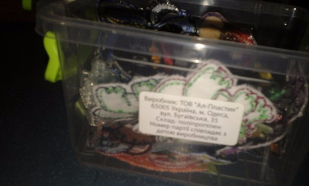 В двух маленьких контейнерах шпули и нашивки с термотрансформерами