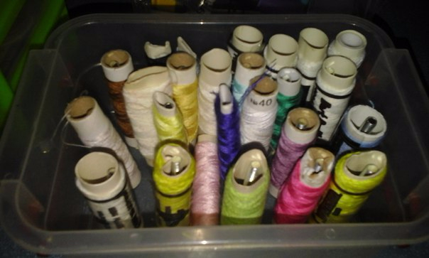 В этом контейнере у меня нитки для шитья - для отделочных строчек, обычные х/б.