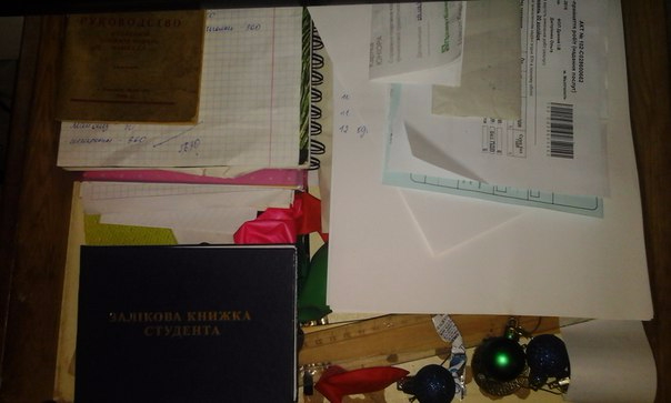 На нем кроме швейной машинки и лампы обычно ничего не стоит. В ящике стола всякий бред - блокноты, бумага, линейки, карандаши, шарики, зачетка, чеки и т.д.