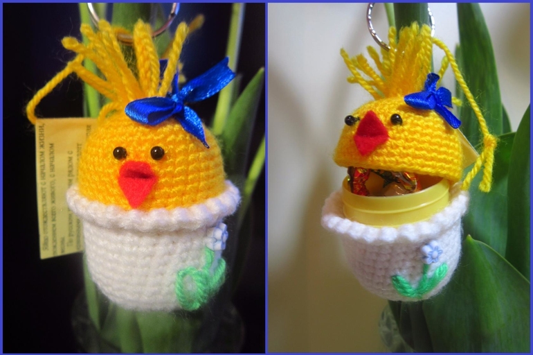 Навязала цыплят - открывающиеся брелочки, внутри маленькие конфетки.
