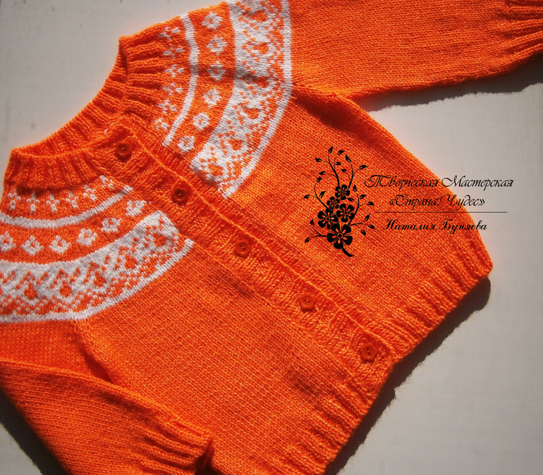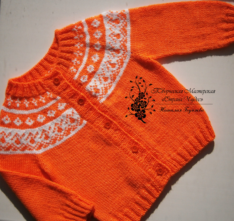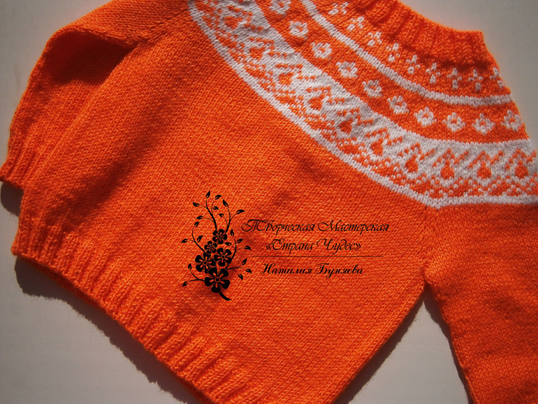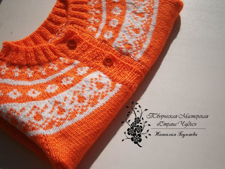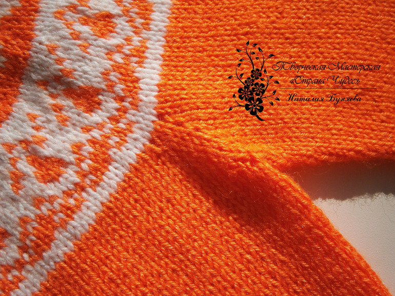 Пряжа NAKO Bambino 3 мотка яркой рыженькой и остатки белой. Спицы нелюбимые №3.