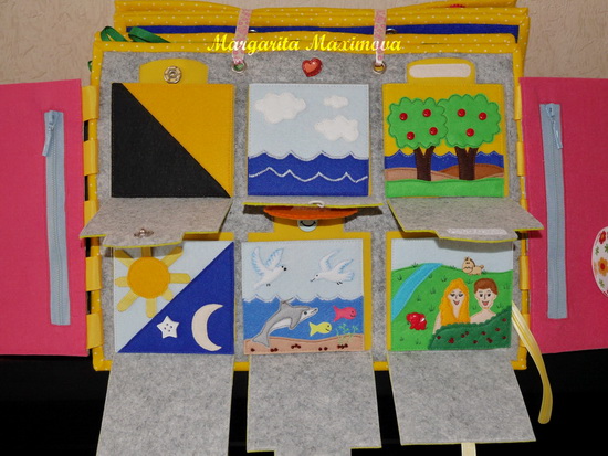 Кармашки шести дней творения на разных застежках. Номера на липучках.