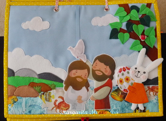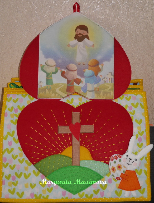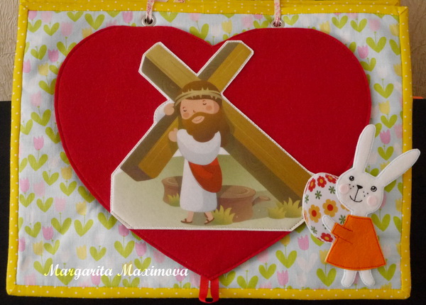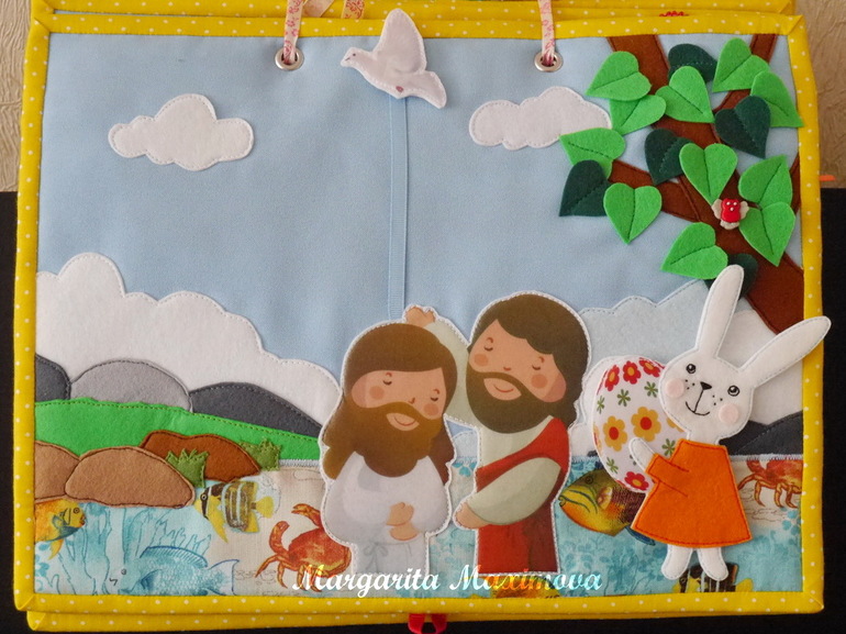 Сегодня я покажу вам мой доооооолгострой. Книжка необычная, на ее страничках будут истории из библии. Главный герой- зайка, которая путешествует по страницам, знакомясь с новыми историями.
