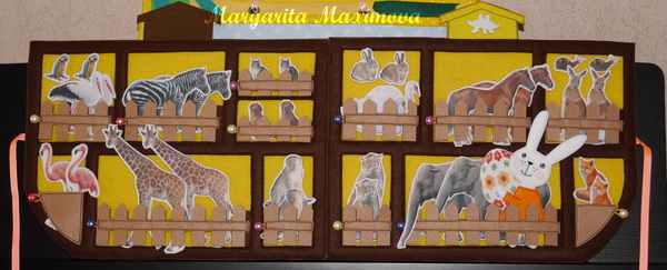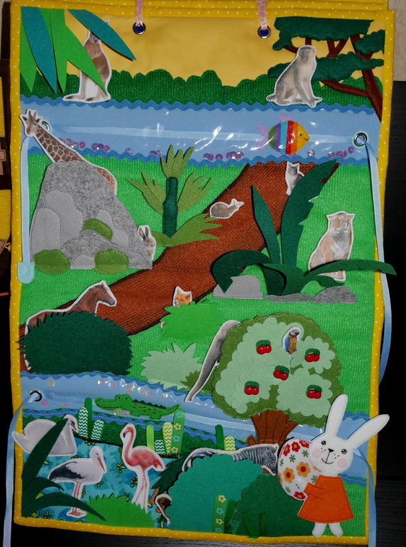 Можно прятать или просто расставлять животных, птиц на панно. А потом находить каждому пару.