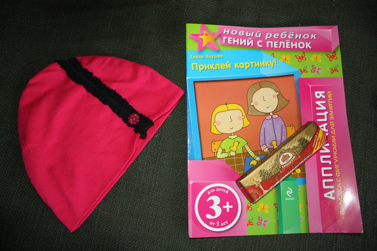 Вот такую классную шапочку, книжечку и шоколадку ))