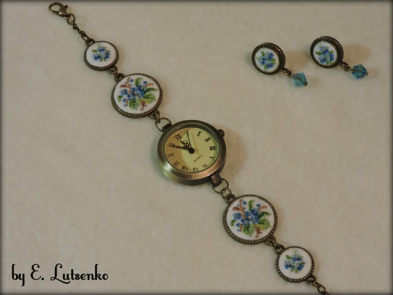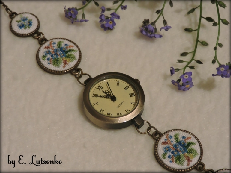 Бижутерия для слингомам. Слингобусы. Грызунки.Долго я вынашивала идею вышить наручные часы, и вот что у меня получилось! Правда я, как всегда, хотела вышить свои любимые розочки, но решила… пусть будут незабудки!