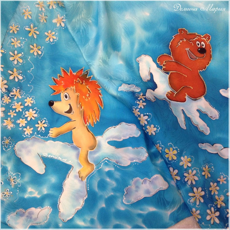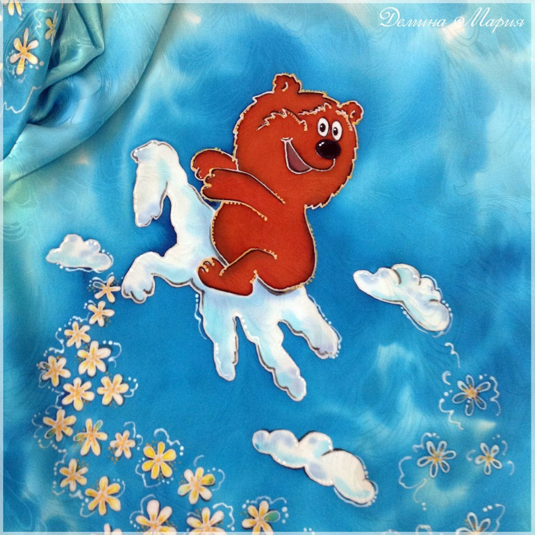 Роспись выполнена на жаккарде (это тоже 100 % шелк, но он довольно плотный и имеет набивной рисунок).