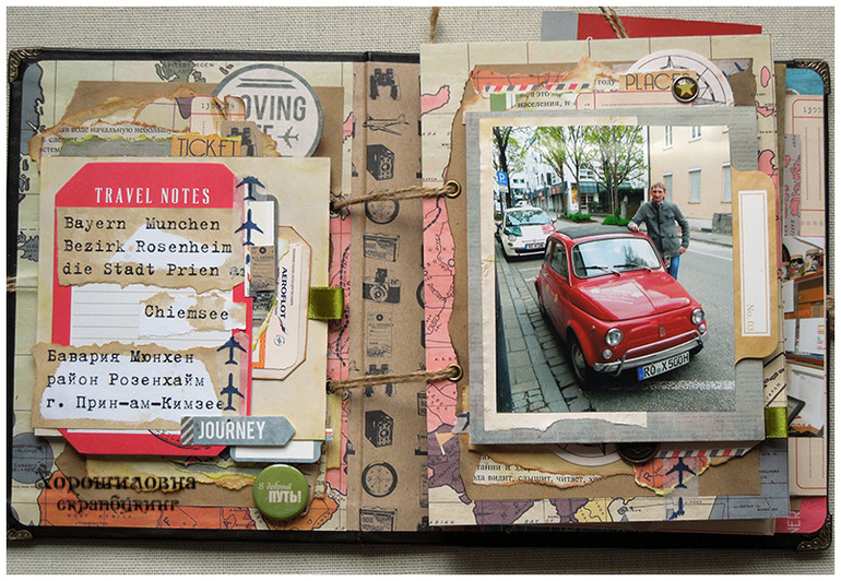 СкрапбукингКнигу путешественника или на языке скрапбукеров - тревел бук я сделала в подарок мужу на его день рождения. Путешествие или вернее служебная командировка в Германию состоялась еще весной 2014 года. Это была его первая поездка за границу. Конечно же масса впечатлений, воспоминаний, интересных наблюдений ... Мне захотелось всё это сохранить, чтобы, перелистывая страницы альбома, в его памяти снова всплывали все моменты и чудесные эмоции этого интересного путешествия. Фото очень много, потому что очень много всяких секретиков, кармашков и открывашек. Поэтому покажу здесь лишь небольшую часть(больше 5) остальное подробно можно посмотреть в моем блоге