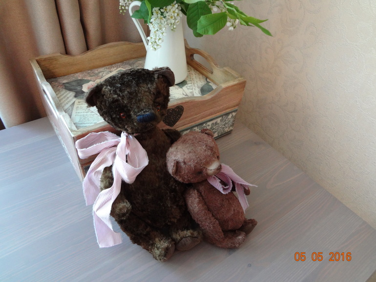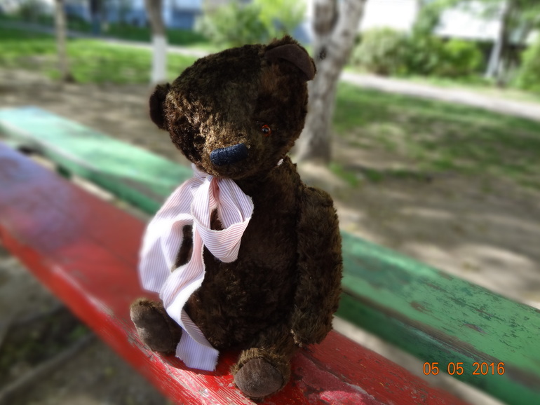 Интересный коричневый! Это про который ты говорила, что сама покрасила? Мишка харАктерный получился, действительно "старенький", с историей))