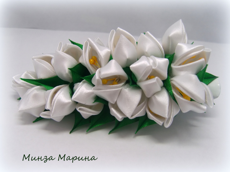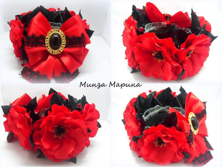 Цветы из ткани и форма. Канзаши. Украшения для волос.