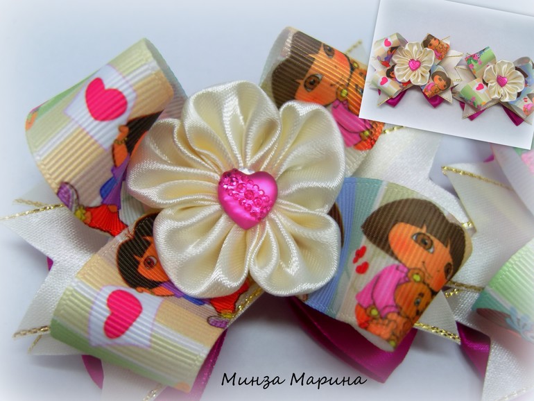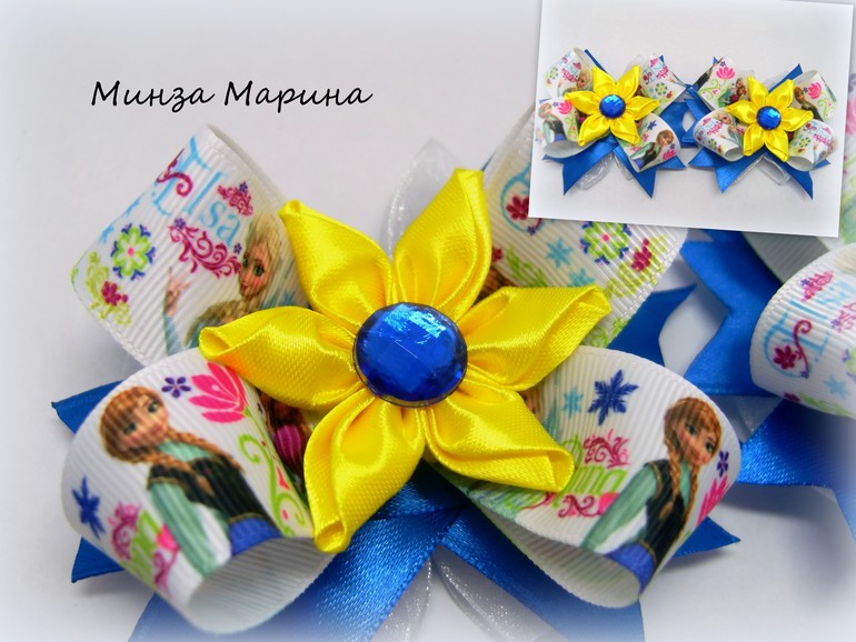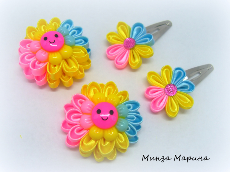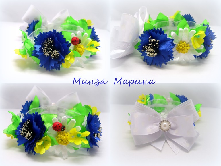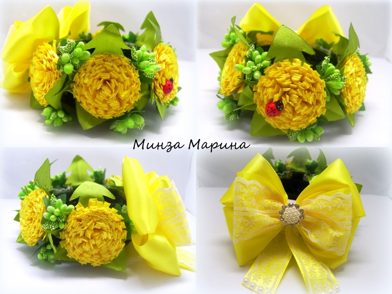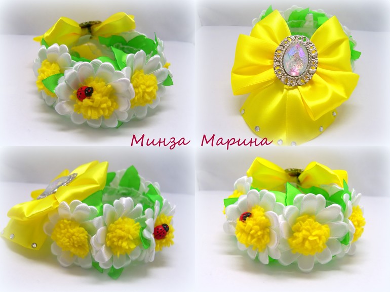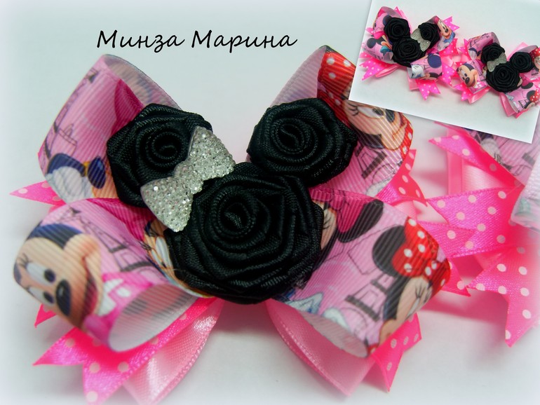 Какая Минни Маус очаровательная. А резиночки на пучок?! Ромашки, васильки, одуванчики... Очень красиво!