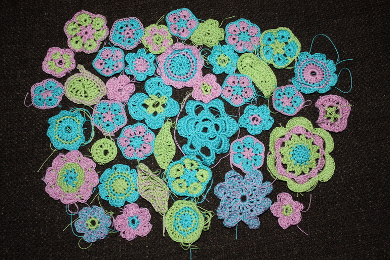 И наконец мои цветочки ))))))))))) Их так много и они все такие разные, аккуратные и яркие. Сочетание салатового, розового и голубого очень здорово и гармонично смотрится. Я прям разложила и рассматривала у каждого цветочка рисунок внутри.. очень затягивает. Вот сынуля вернется с дачи и наведет мне в них "порядок" )))))))