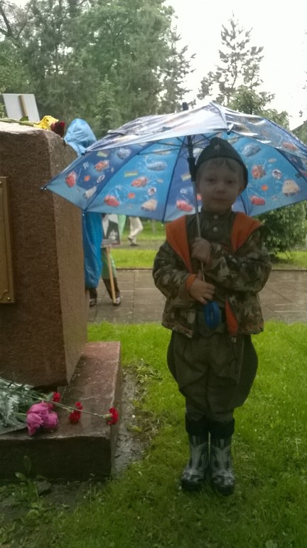 А это мы сегодня в парке 28-ми панфиловцев. Попали в ливень, до нитки промокли. Зато эмоций у ребёнка через край, он вышагивал там. Человек 6 ветеранов подошли, пожали ему руку. К вечному огню опять не пробрались, положили гвоздики у памятников героям-панфиловцам.