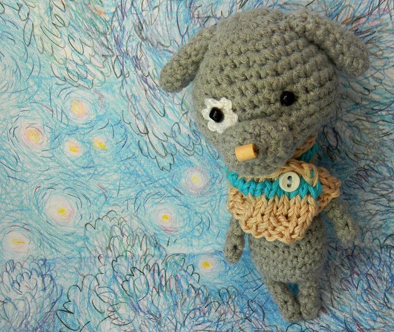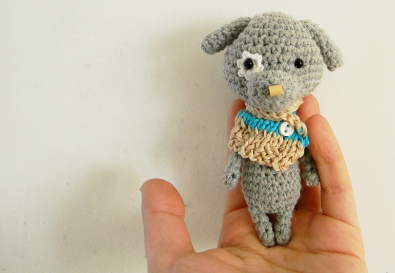 Амигуруми (вязаные игрушки)Здравствуйте, долго смотрела на ниточки, думала, чтобы связать. И вот получился в итоге вязания маленький малыш щеночек с вязаным спицами воротником на пуговичке. Пятнышко в виде цветочка намекает, что это девочка )