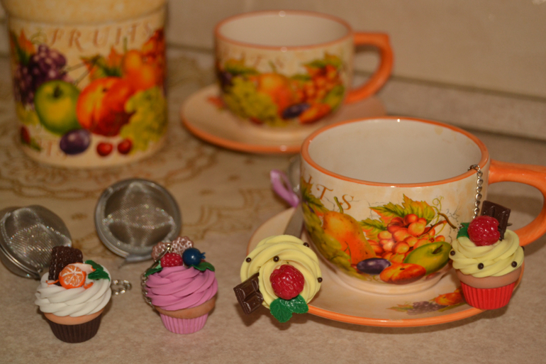 Оцените пожалуйста мои сладости: Пироженки на ложках и вилках и ситечки для чая с пироженками