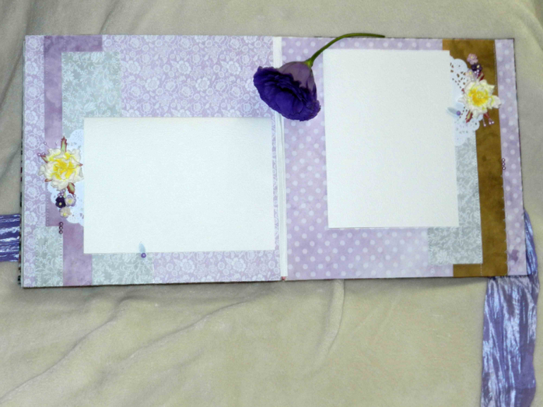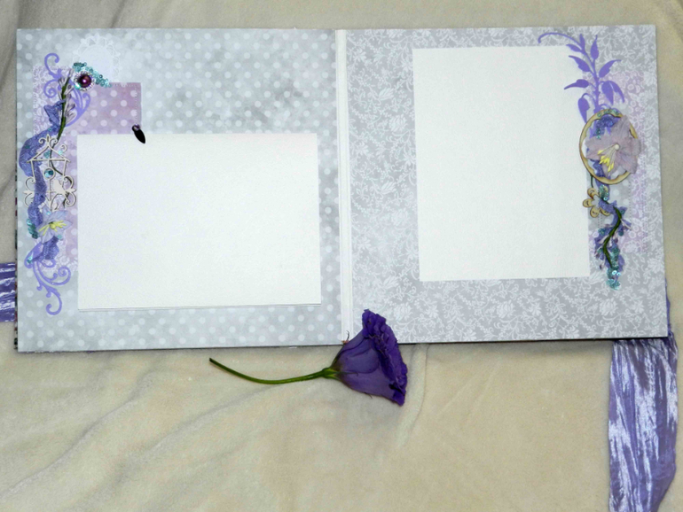 СкрапбукингДобрый вечер! За окном с утра льет дождь, буду разбавлять эту серость своим любимым сиреневым цветом. Покажу новый альбомчик. Всего 4 разворота,25х25 см, будет хранить 22 фото с семейной фотосессии, форматом 13х18. Его подарят бабушке