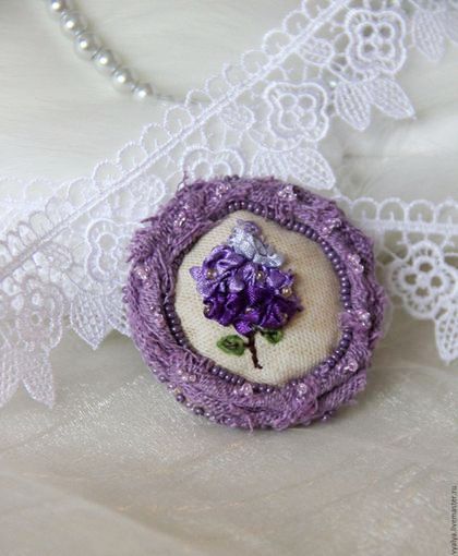 Бижутерия для слингомам. Слингобусы. Грызунки.Сделала брошь Сирень. Лен,бисер, атласные ленты. Изнанка эко кожа. Вроде ничего получилась.