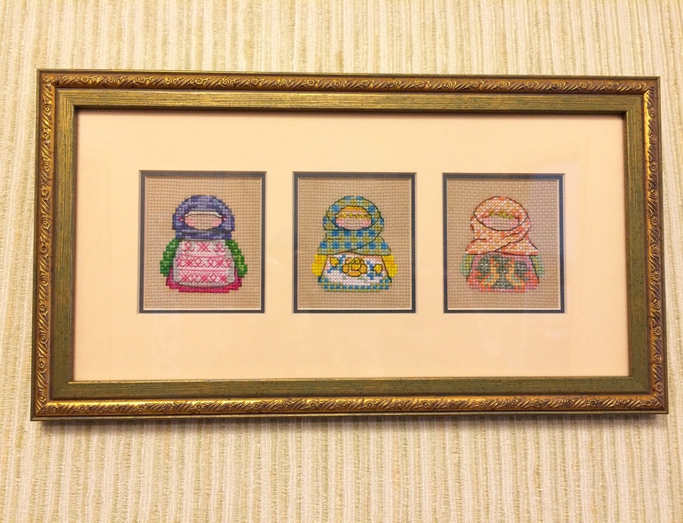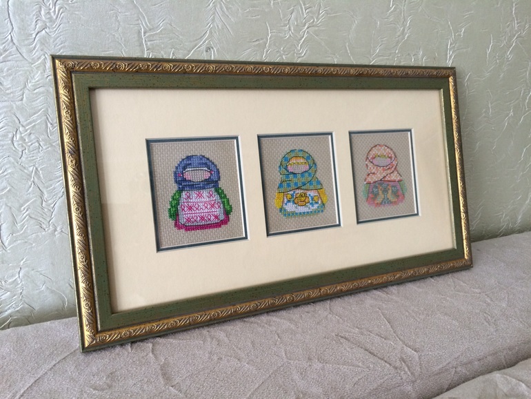 Вот и я вышила и, наконец-то, оформила своих бабусек) Долго ковырялась в багетной мастерской с выбором материала и цвета... Результатом осталась очень довольна!!!!)