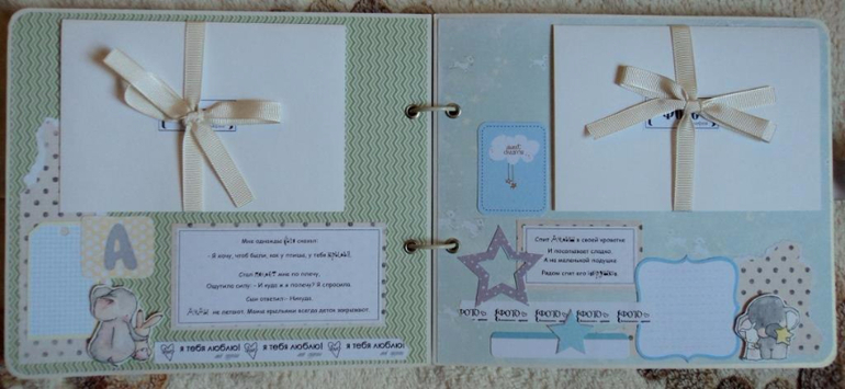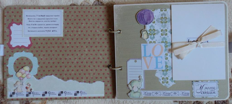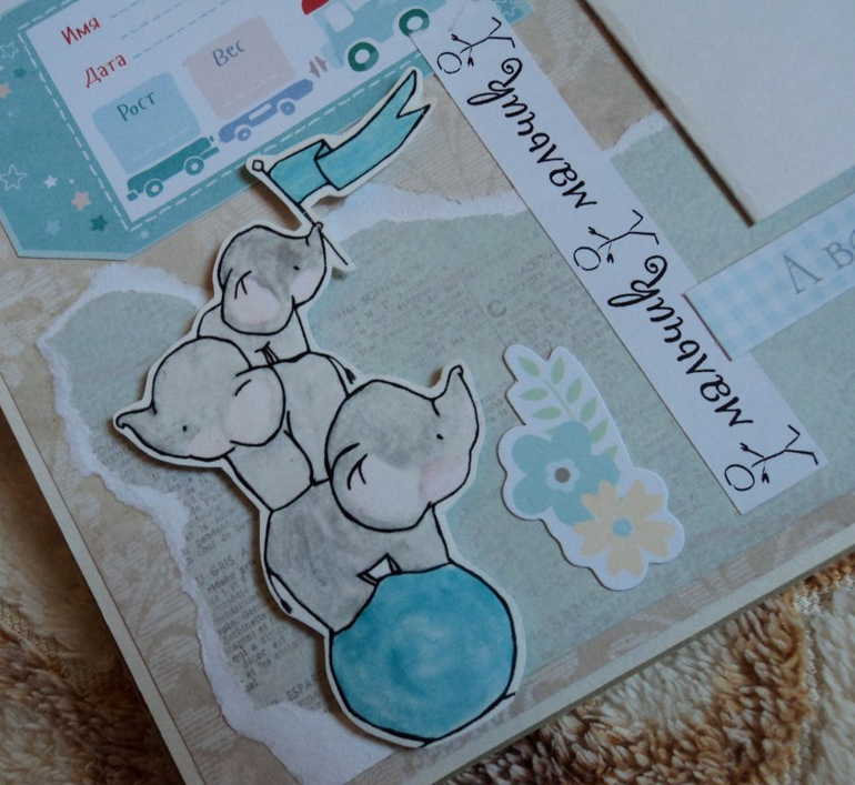 СкрапбукингВсем доброго дня и прекрасного настроения) Наконец-то я закончила свой «долгостройчик». Заказчица отказалась на середине пути, я думала быстро доделаю, но в какой-то момент вдохновение меня покинуло, вот он, бедненький, и лежал долго-долго. Но в выходные я всё исправила. Итак, очаровательный альбом для малыша, 7 разворотов, вмещает более 40 фото, есть места для записей. Альбомчик украшен очаровательными картинками из серии «Акварельный слоник», надписями и замечательными стихами. Всем приятного просмотра (!!!много фото).