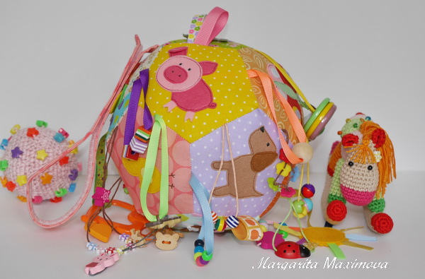 А я тоже все про старшего своего думаю))) Тогда и слышать никто не слышал про развивающие игрушки)) Я простые игрушки ему шила... жирафиков да бегемотиков))) А сейчас такое разнообразие))) Старшенький мой тоже с удовольствием рассматривает все, что я делаю.