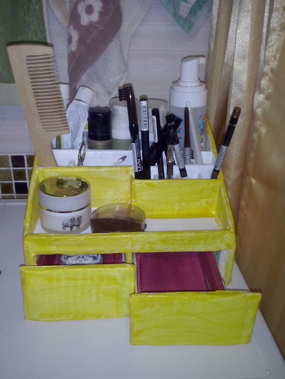 Изделия из бумаги, папье-маше, квиллинг.Лежала моя косметика в ящичике в ванной, никого не трогала и никому не мешала. Но одна пара шаловливых детских ручек добралась до ящичка и трудно стало маме что то потом найти.