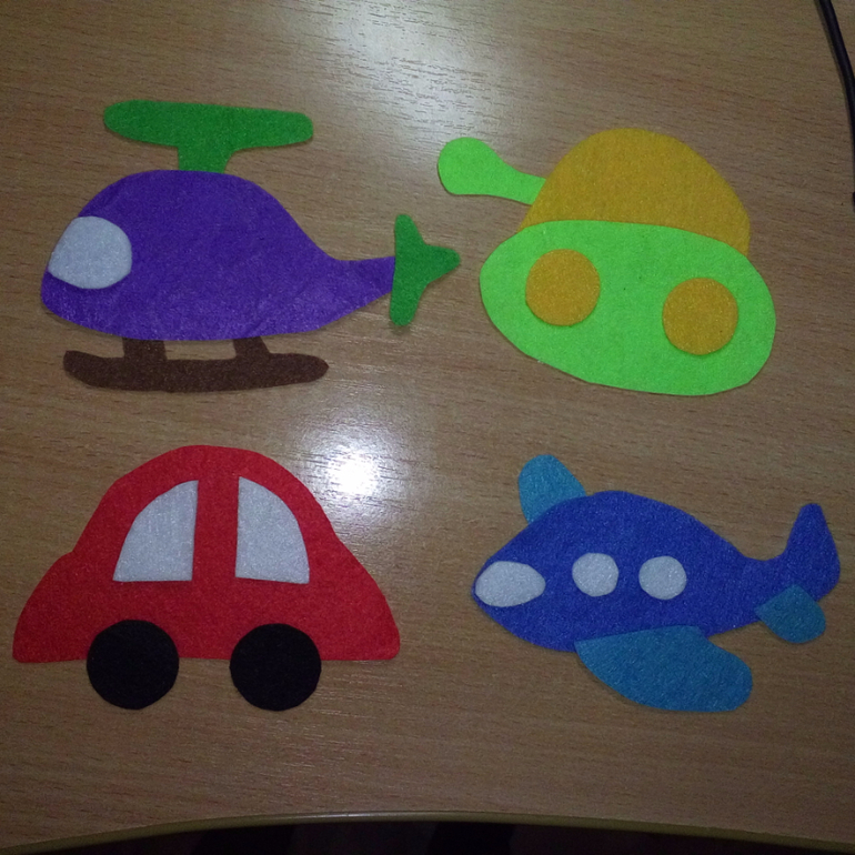 Всё. Готово. Играем. Собираем фигурки танка, самолета, вертолета и машинки.