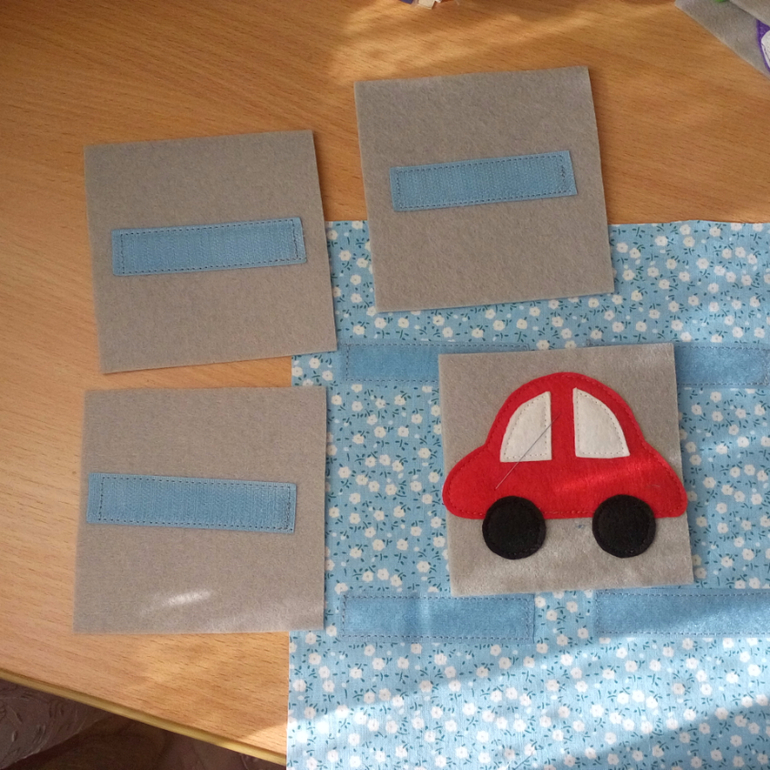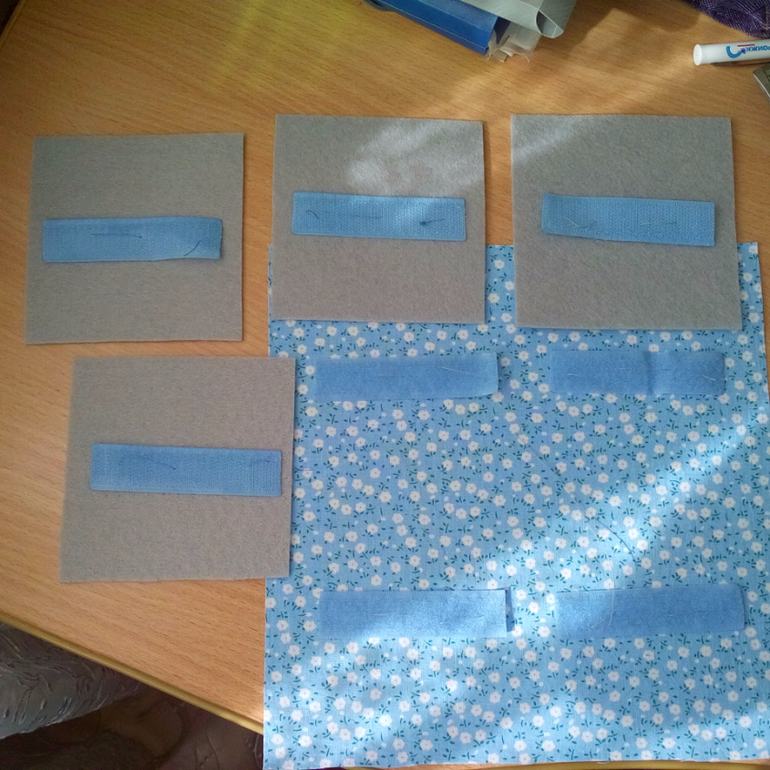 7. Приметала к основе странички мягкие части липучки, а к нижним половинкам картинок колючие.