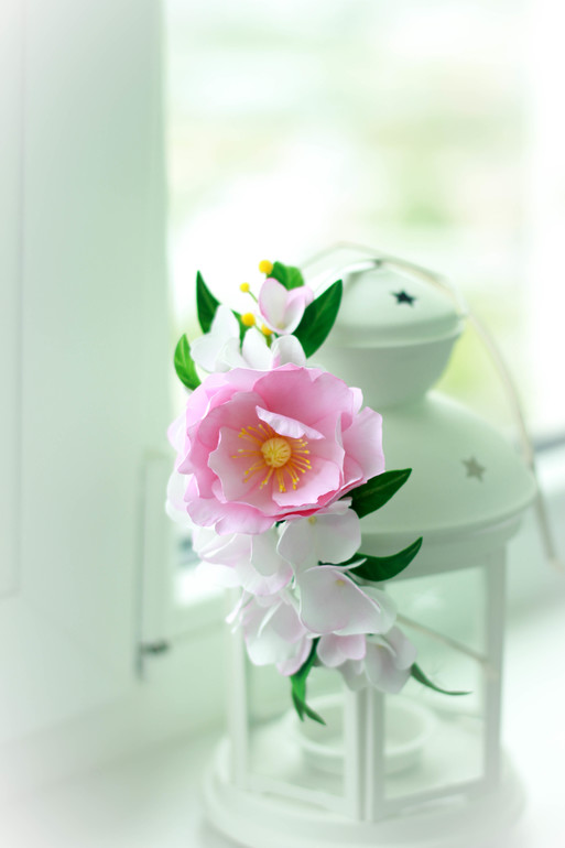 Цветы из ткани и форма. Канзаши. Украшения для волос.