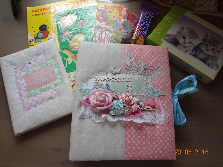 чудесный альбом, сюрпризом был милый блокнотик!!! И для детишек Оля положила подарочки))). Спасибо Олечка за обмен,надеюсь и моя посылка вас порадует)).