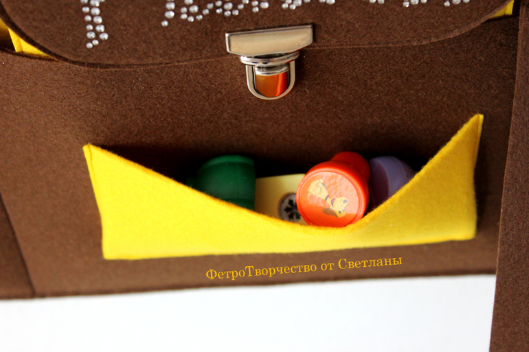 А в маленьких объемных карманах удобно хранить :точилки, блестки, фигурные дыроколы .