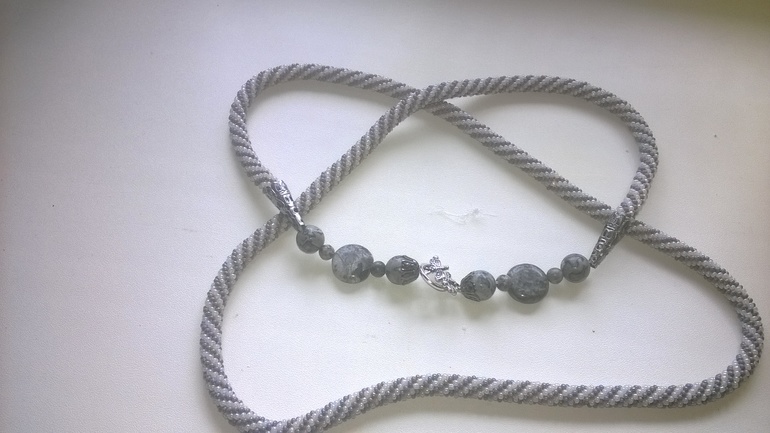 серенький связан из чешского бисера, ниточками канарис, и использованы камни оксидиан