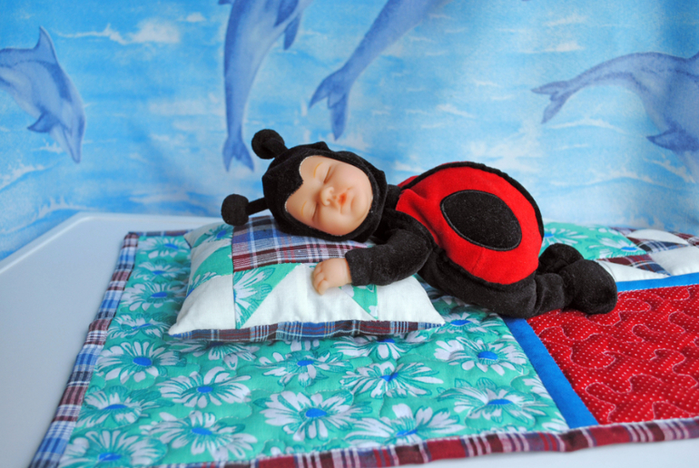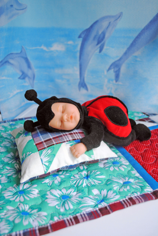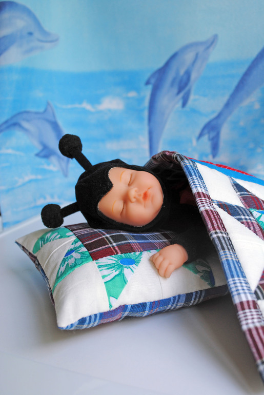 Лоскутный кукольный комплект №2 (одеяло-плед и подушка).