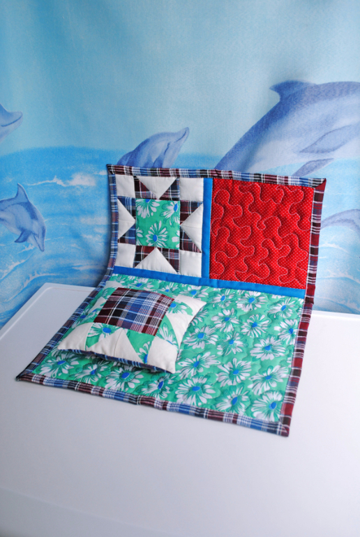 Лоскутный кукольный комплект (одеяло-плед и подушка). Лоскутная подушка:)