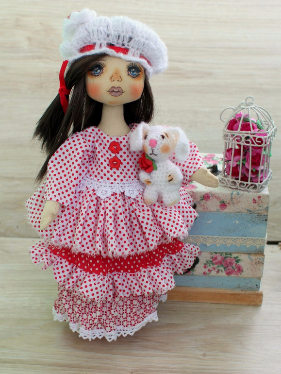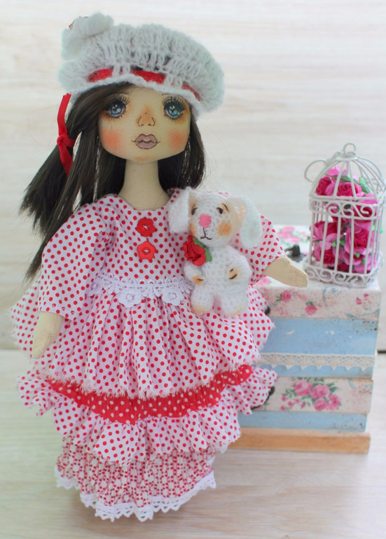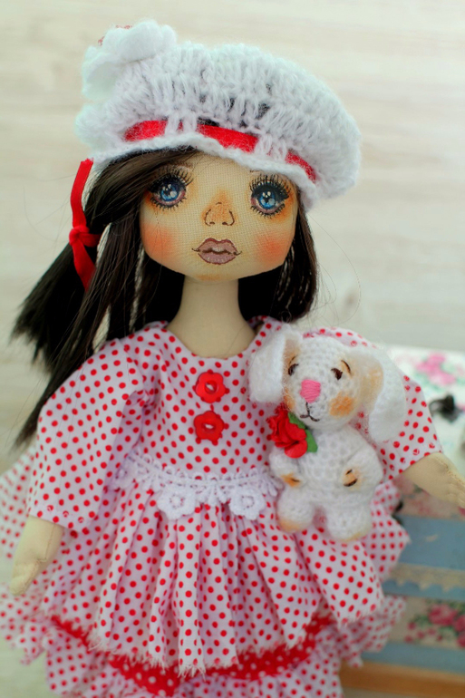 Кукольный мир - человекоподобные куклыНеженка - интерьерная коллекционная текстильная кукла, рост 32 см. Сшита из корейского хлопка, искусственного меха, искусственной замши. Одежда снимается (кроме панталон)