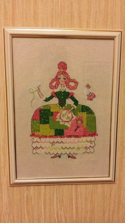 Оформила пока в обычную стандартную рамку, возможно позже оформлю в багетке.
