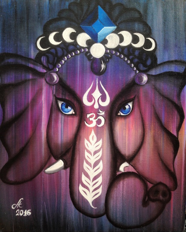 Живопись, точечная росписьВсем доброго дня! Сегодня решила поделиться с вами своей недавней работой. Ганеша в индуизме бог мудрости и благополучия, покровитель искусства и науки, астрологии. Считается устранителем препятствий. Образ его всегда меня привлекал, но с недавнего времени буквально стал меня преследовать, как будто прятался за каждым углом. Копилась во мне эта энергия и однажды выплеснулась на холст.