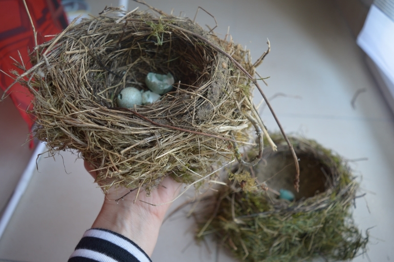 Мне галантный мужчина 6 лет преподнес в подарок мечту моего детства - заброшенное птичье гнездышко! Аж два! И со скорлупками! Я привезла их домой и теперь мне надо найти творческое решение, как оформить их в декор?!