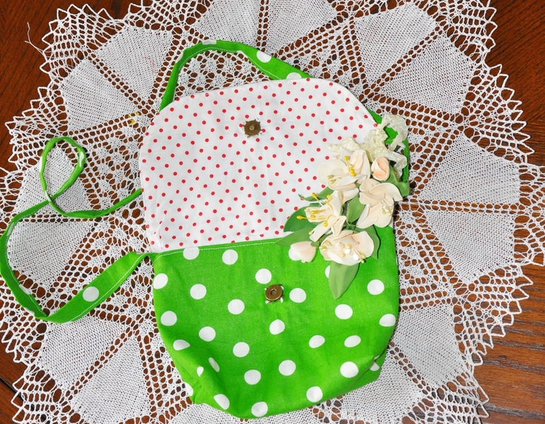Шитье одежды, выкройки, ремонт одежды, шторы, швейные машины (уже приобретенные)Для обмена с Юлей сшилась сумочка для её доченьки Настеньки. Надеюсь сумочка Насте придется по душе. Сумочка застегивается на магнитную кнопку.