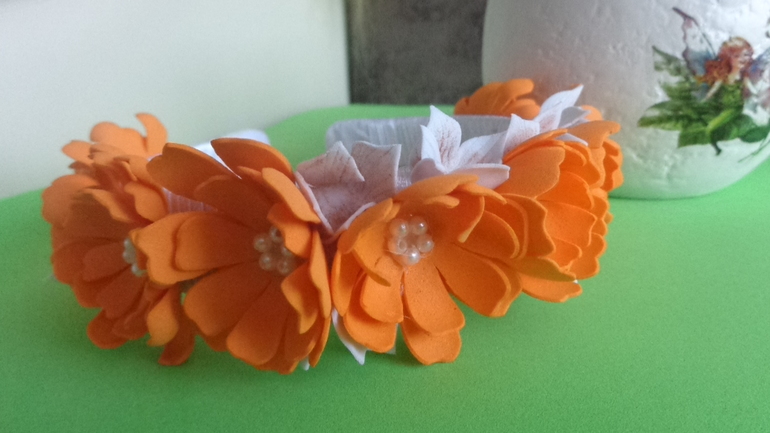Цветы из ткани и форма. Канзаши. Украшения для волос.Попробовала изобразить один из любимых цветов -календулу.