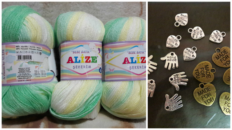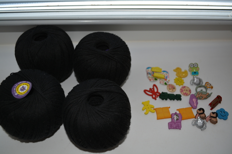 Нитки вязальные Фиалка 100% хлопок и чуть больше 20 декоративных пуговок