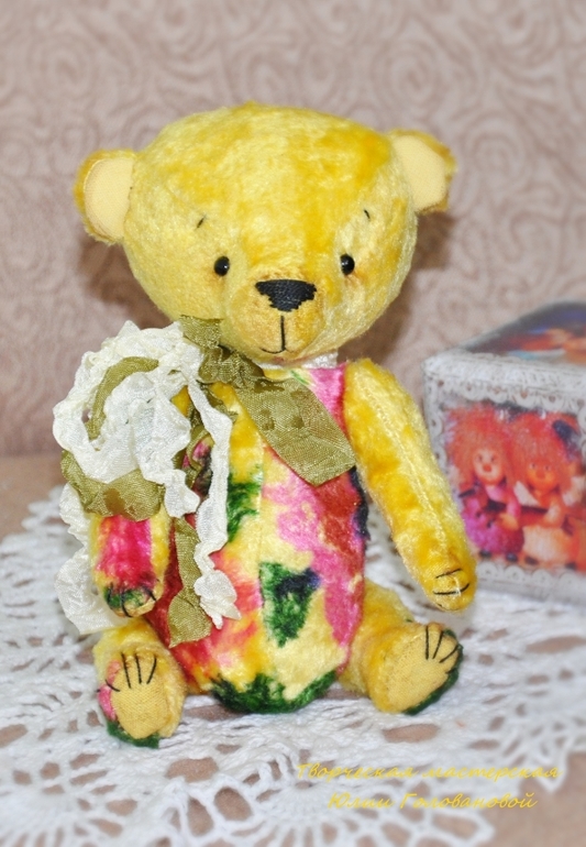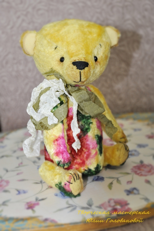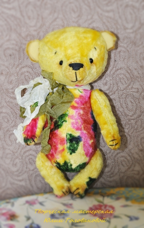 Мне желтого цвета в прошлом году достались две наволочки, с них и началась моя теддимания.все исшила давно. И красила его и обессвечивала, экспериментировалаи руку набивала))