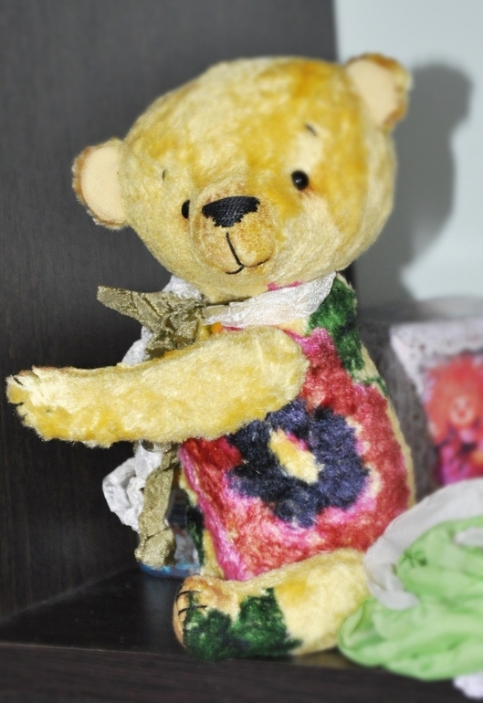 Тедди: мишки и их друзья.30 мая появился на свет мишка Цветик. Солнечный мишка- цветастые бока. Мишка сшит из винтажного плюша времен СССР. Он как взгляд из прошлого, из нашего советского детства... Смотришь на него, и вспоминаешь уютный бабушкин дом, запах её вкусных пирожков, её ласковые слова, её заботу и любовь, беззаботное детство....