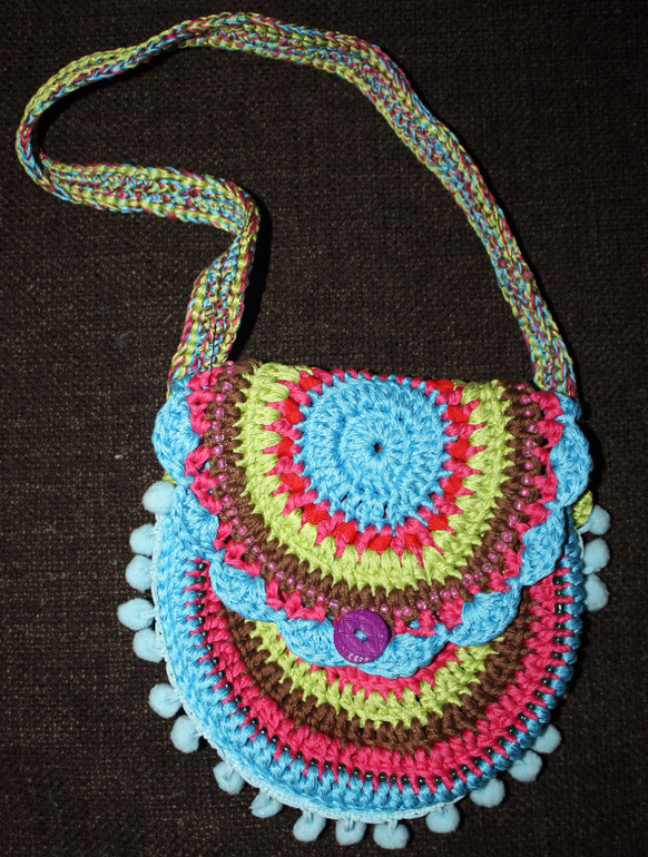 И вот сама сумочка. Она такая яркая, сочная. Вязка очень плотная и сумочка держит форму. Все очень мило и аккуратно сделано.