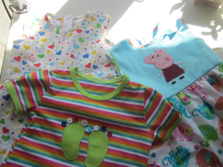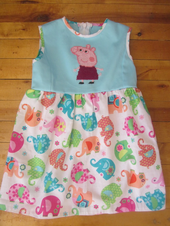 Платье из американского хлопка. Выкройку строила сама. Свинка Пеппа вышита крестиком.
