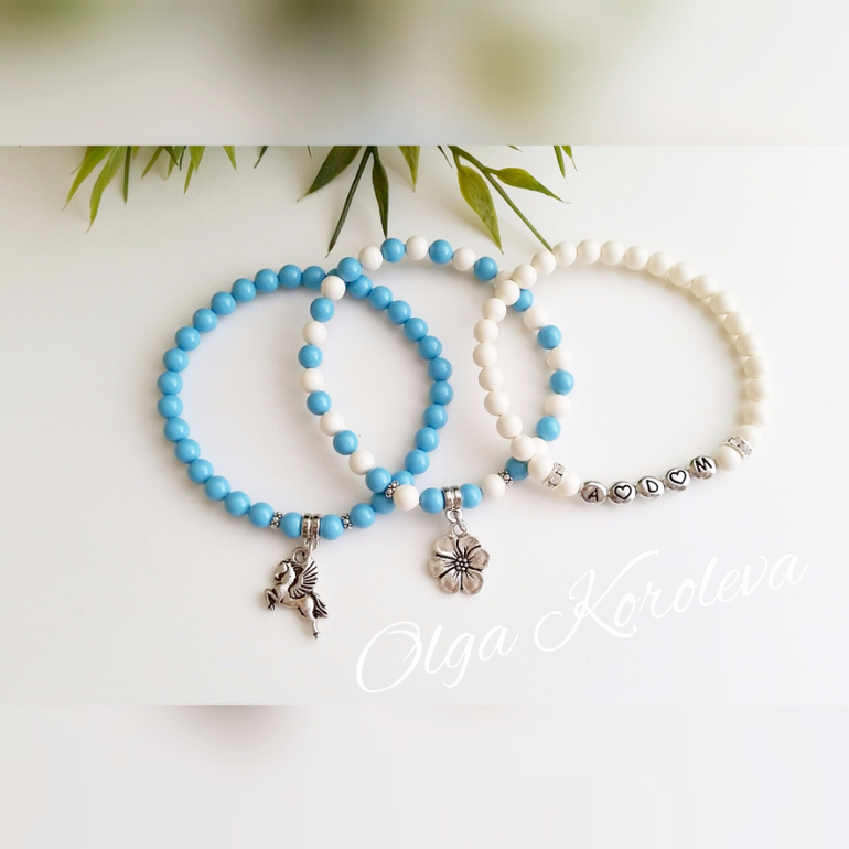 Бижутерия для слингомам. Слингобусы. Грызунки.Делала в подарок для моей знакомой вот такой сет с инициалами членов семьи. Кристальный жемчуг Сваровски, разделители со сваровски и американская фурнитура с родиевым и серебряным покрытием.
