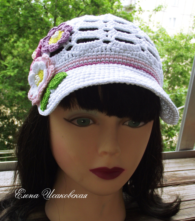 Вязание крючком (РАБОТЫ И СХЕМЫ)Пряжа для кепки Пехорка Успешная в 2 сложения, для украшения разные остатки. Крючок Кловер 2,25. У шляпки Вита Розе, крючок 2,25.