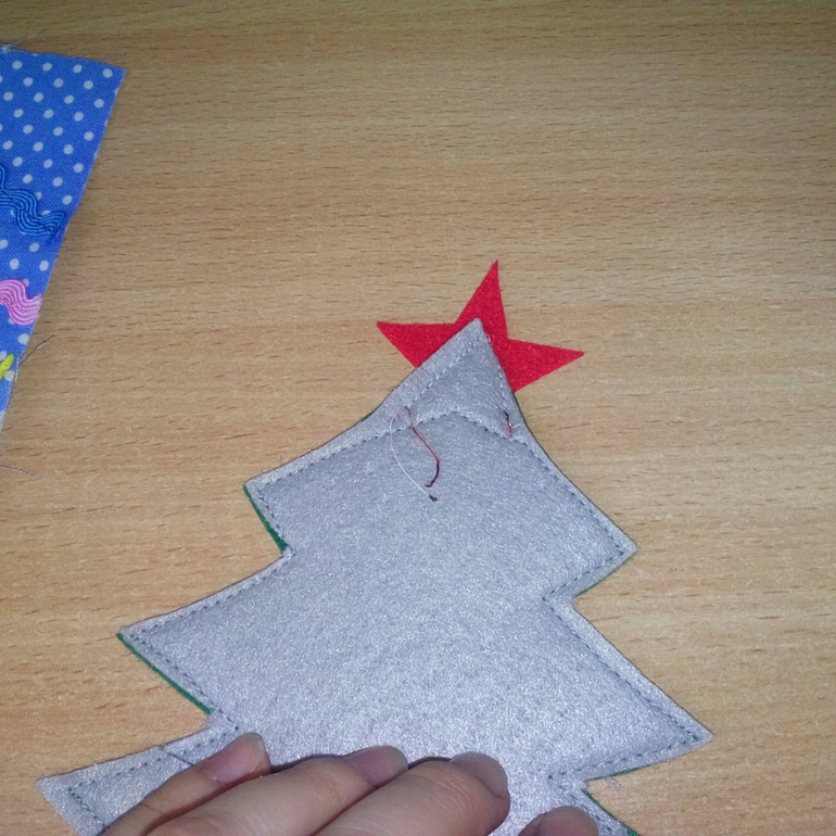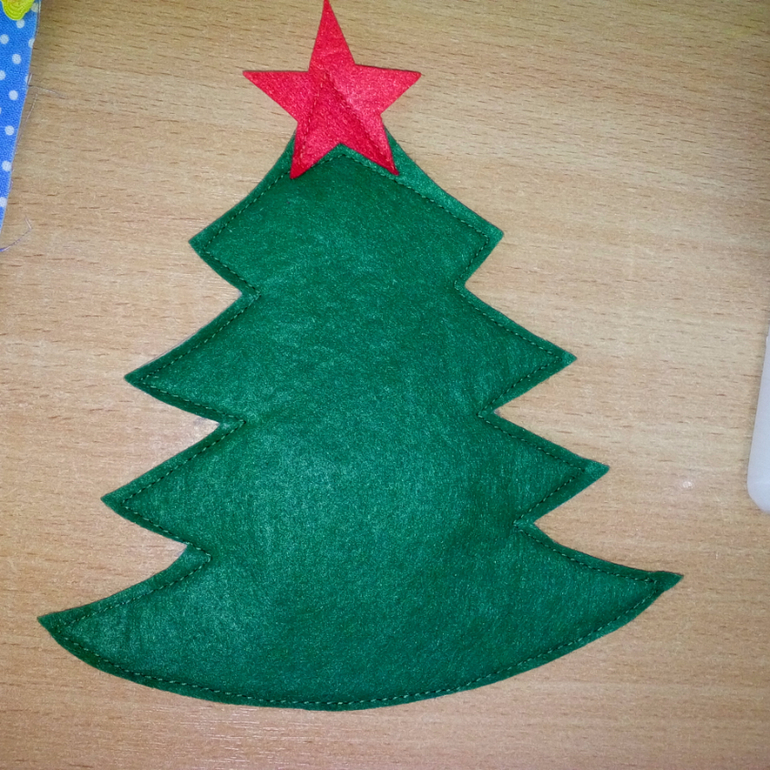 10. Елочку сделала потолще: пристрочила снизу слой толстого фетра, пришила звезду, её тоже позже сделаю из нескольких слоев.